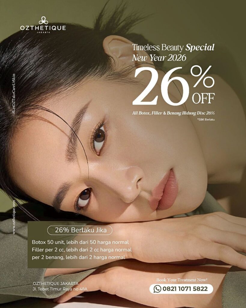 Nikmati diskon spesial 26% untuk perawatan estetika pilihan yang dirancang untuk mempertegas kecantikan alami dan hasil yang tahan lama.